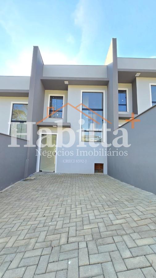 Schramm – Residencial Sieben: Ótimo sobrado, novo, com laje, com área privativa de 59,05 m², sendo: sala de TV e cozinha integradas, 02 dormitórios, banheiro social, área de serviço nos fundos do sobrado e espaço para um veículo. No condomínio há 02 áreas de festas com churrasqueira. Imóvel financiável. R$285.000,00.