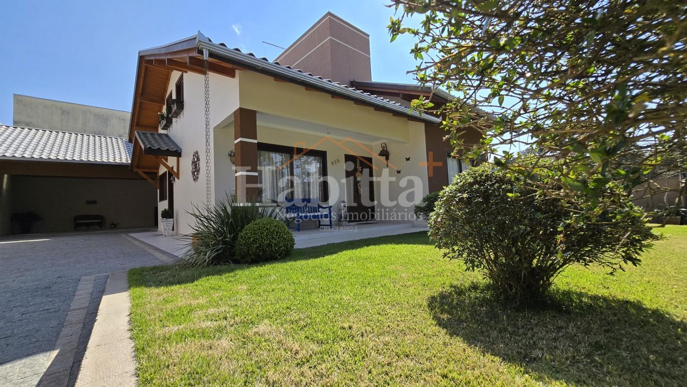 Progresso - Parque Mariane: Ótima casa de alto padrão, com área total construída de 243,52 m². Seu terreno é acima do nível da Rua, todo murado e cercado, com 414,00 m², tendo 18,00 metros de frente. O imóvel é bem ensolarado, conta com ambientes amplos, bem iluminados e em excelente estado de conservação. A casa possui aquecimento a gás, portão eletrônico e interfone. Os acabamentos vão desde porcelanato e piso laminado, sancas em gesso até janelas e portas externas em itaúba.   Confira sua descrição: