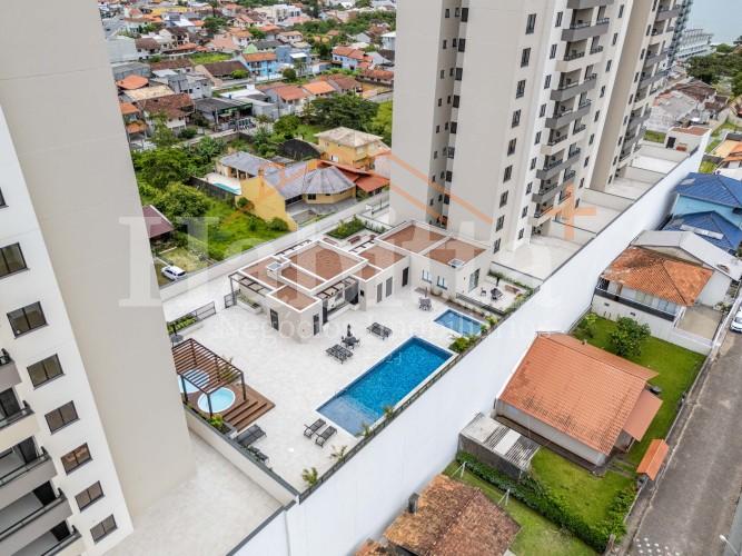Centro: Residencial Skyline Comfort Club em Penha/SC, empreendimento com 02 torres de 17 andares, sendo 14 andares reservados aos apartamentos.